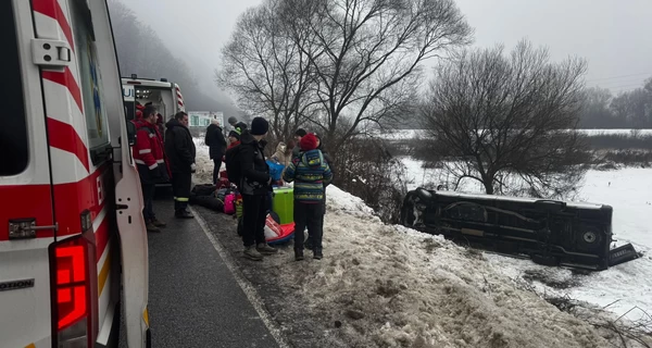 25 января 2026 В Закарпатье через гололедицу перевернулся микроавтобус с детьми, которые ехали из Киева в Карпаты на